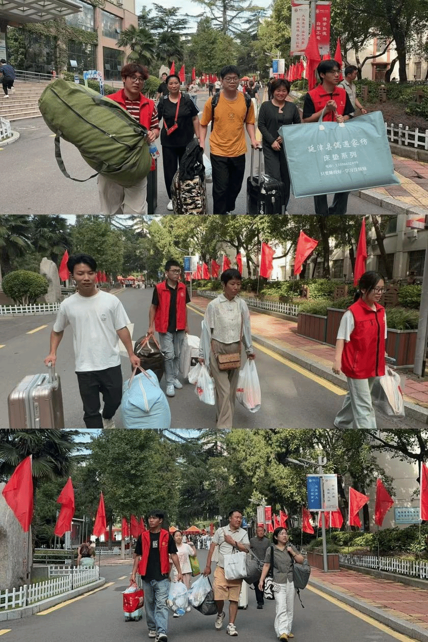 校园内,欢声笑语,人头攒动,秩序井然,整个迎新过程有条不紊、温馨有序。学院招募的上百名志愿者早早来到自己的岗位,提供从校门口到宿舍的一站式帮助。从新生踏入校园的那一刻起,志愿者们便热情地帮助新生搬运行李、指引报到流程,耐心解答新生和家长的疑问,热情地引导着每一位新同学,用实际行动传递着tyc234cc太阳成集团的温暖与高效。