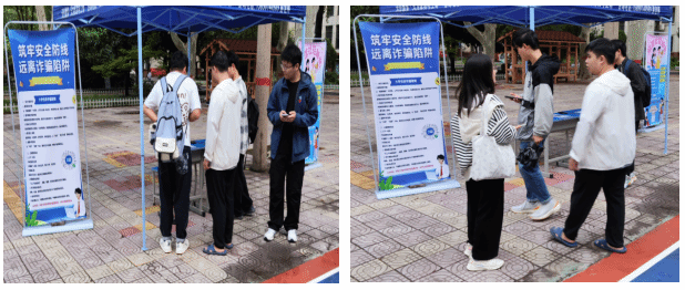 活动以普及学生综合安全知识、提升学生应对诈骗“实战”能力、建立“反诈志愿者”储备库为目的,采用“线下扫码答题+现场互动引导”的形式,助力学生深入了解诈骗手段,提升防范能力。